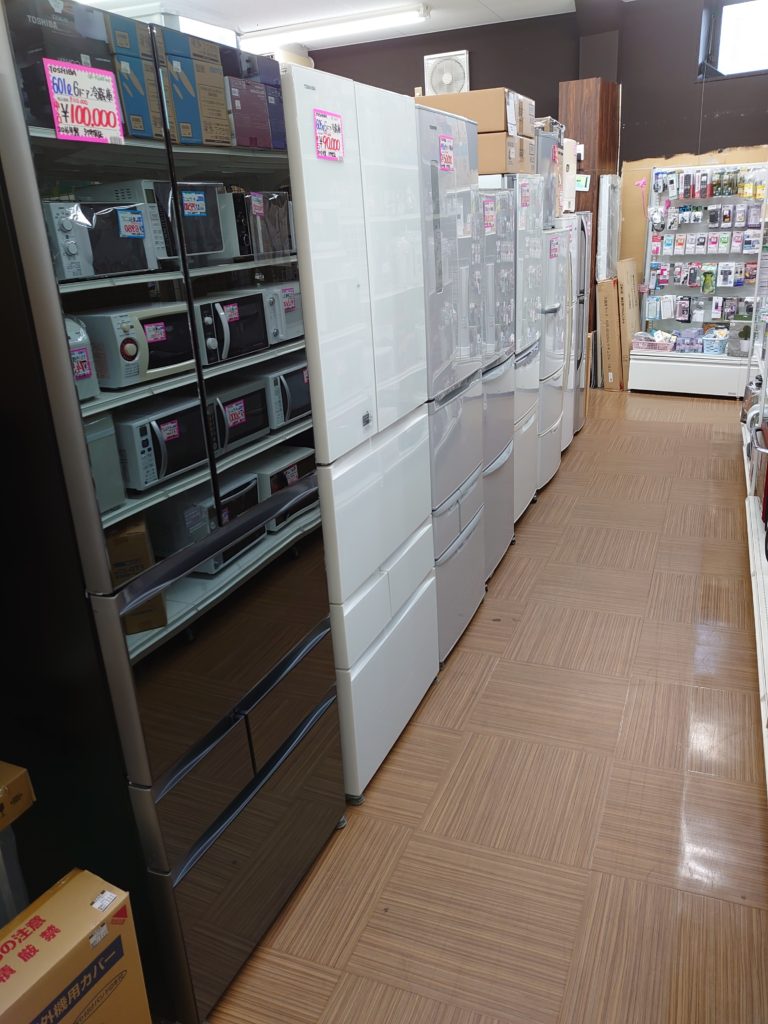 600Lクラスのまでの冷蔵庫、60型までの4K大型テレビ在庫してます。